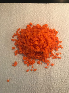 After your bases are all set you will need to make your "sand" and your "water". To make "sand" you can crush up graham crackers or cereal. This step is fun for kids. Just add whatever you are going to use for the "sand" in a ziplock bag and something tough for the kids to hit the bag and crush the crackers/cereal. We used a mix of Cheerios and Kix cereal because we didn't have a ton of graham crackers. Now, to make your "water", just mix some blue food coloring into your vanilla icing.