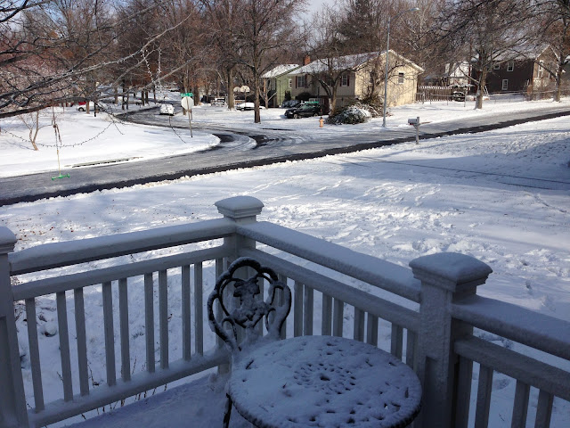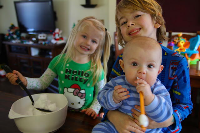 Well, today was the PERFECT day to start out Brenden Christmas break! We woke up to 2-3 inches of SNOW!!! We hardly had any snow last year so we were all pretty excited about this! The kids were dancing and screaming when they woke up! Garren got his first feel of snow sitting in the warm house! He didn't really care the cold white stuff that we just dumped in his lap!