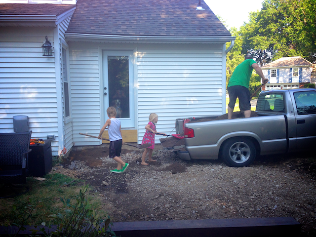 First step to the project was to fill in the back with dirt to level the ground!