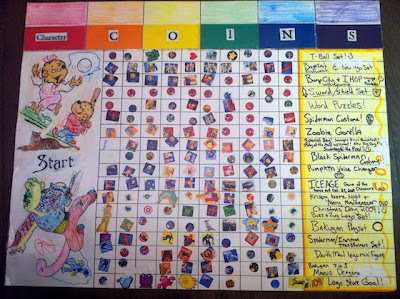 I came up with a coin chart when my son was three years old and I wish I would have come up with it sooner but we used it effectively for three years! At the age of six we changed it up a bit and he now manages his own REAL money (very important in a child's development and will blog about soon).