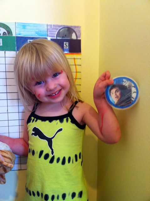Here is my big 3 1/2 year old, excited to start her coin chart! =) I think it's so cute how her FAVORITE coin is Jack Black! If she doesn't listen, this coin is the LAST one she will choose to go! =)