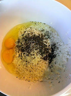 While your sauce is cooking, make your cheese mixture... just add all ingredients in a bowl, mix together, and set aside.