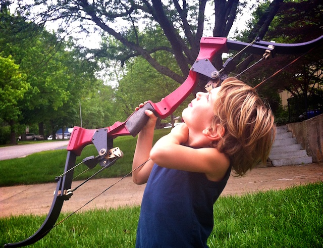 I went to the fabric store and found this AWESOME black fabric that looked like leather and bought the smallest amount they would let me, which was 1/8 of a yard. I also used this same fabric to make the Quiver (the carrier for your arrows), Part 3 post which you will have to check back for in a few days. So you will use most of it!