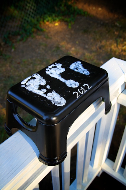 Take a picture of your child's feet in a V shape. Then, I simply added the letters in Illustrator!